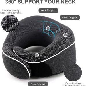 Travel Neck Pillow, Best Memory Foam Airplane Pillow for Head Support Soft Adjustable Pillow for Plane, Car & Home Recliner Use (Black1)